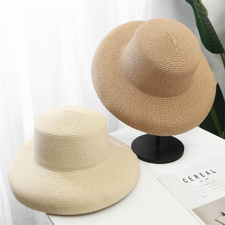 Wanita Pria Lebar Brim Panama Coklat Hitam Putih Lipat Pantai