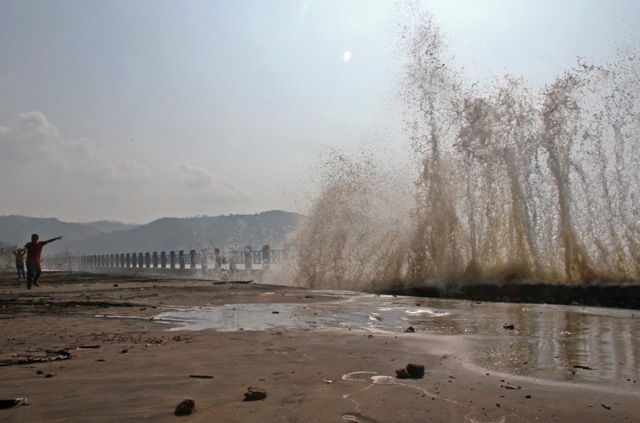 Gelombang Pasang Tulungagung Ombak Terjang Pagar Pembatas Pantai