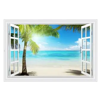 Acagedem 3d Tiga Dimensi Jendela Pohon Kelapa Pantai Ruang Tamu