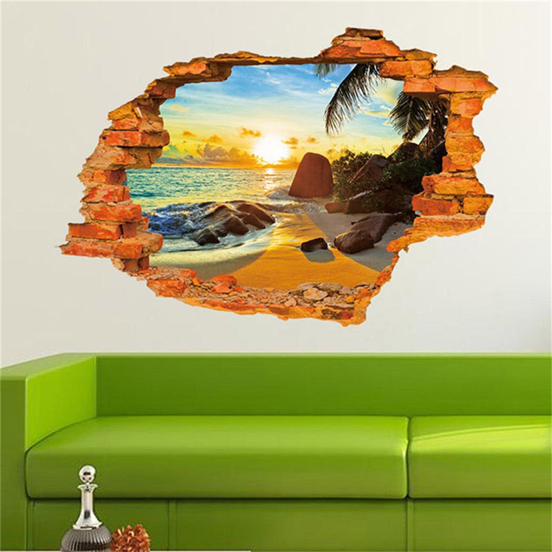 Bayar Di Tempat Wall Sticker 3d Jendela Dengan Pemandangan Pantai