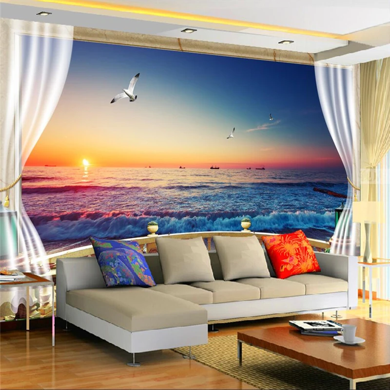 Beibehang 3d Balkon Pemandangan Pantai Latar Belakang Modern